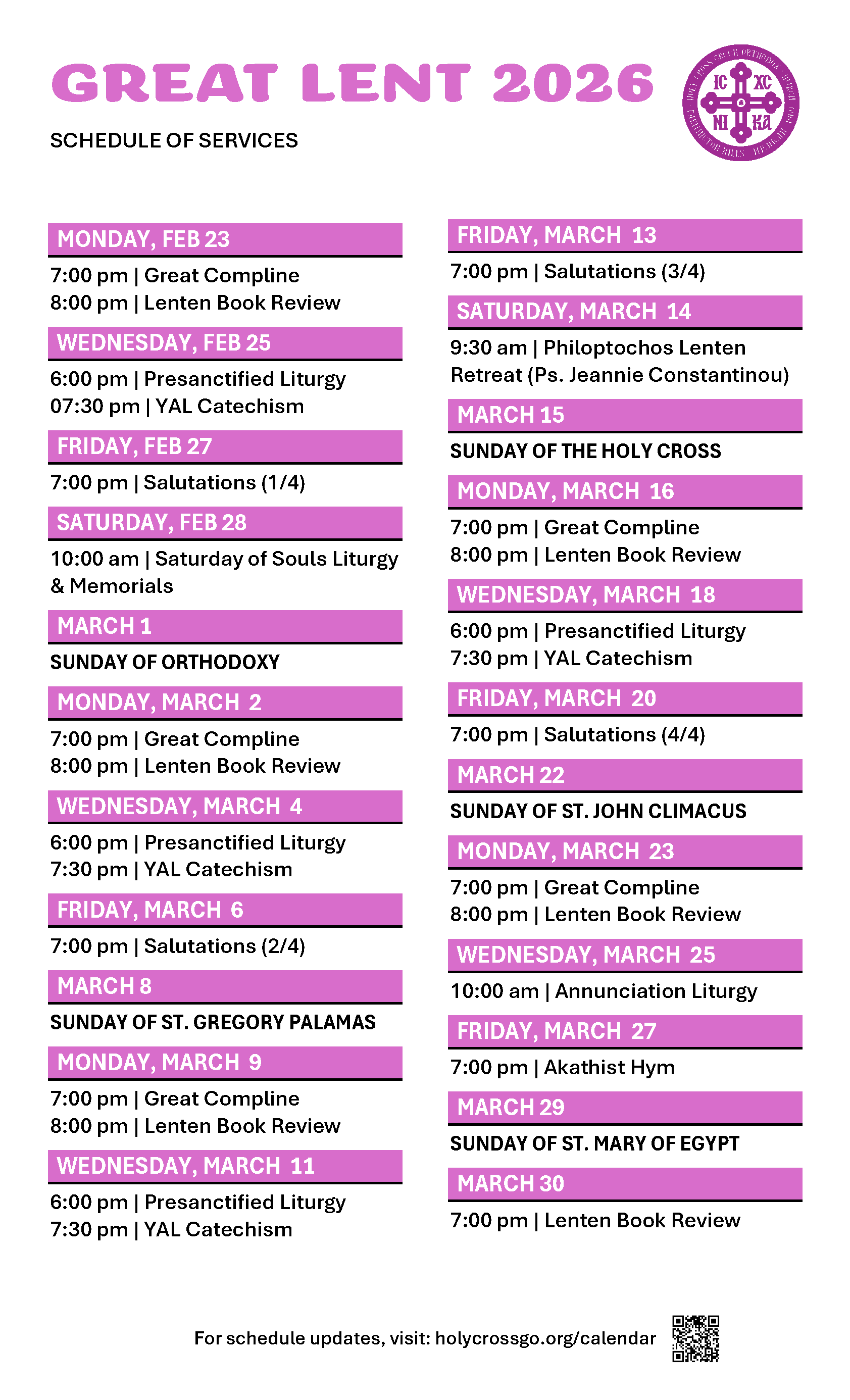 In the middle of Lent, the Cross is brought out for veneration as a sign of Christ’s victory and as a source of strength for the faithful on their Lenten journey. It reminds believers of the Lord’s Passion to come and calls each Christian to deny himself, take up his personal cross, and follow Christ.